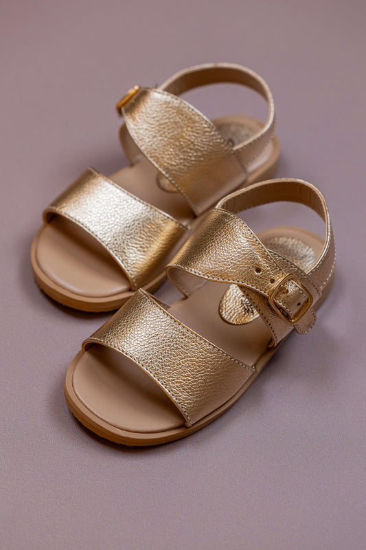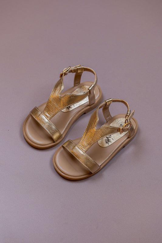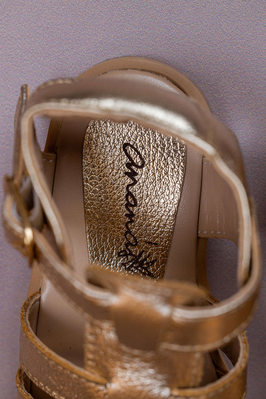 Sandália Infantil Ananás Manu Couro Metalizado Ouro