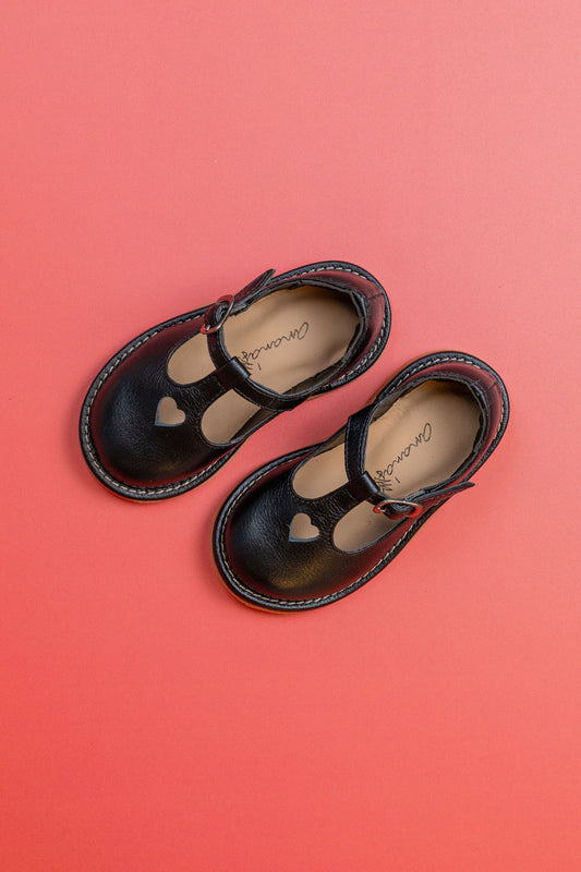 Sapato Infantil Ananás George Coração Couro Verniz Preto