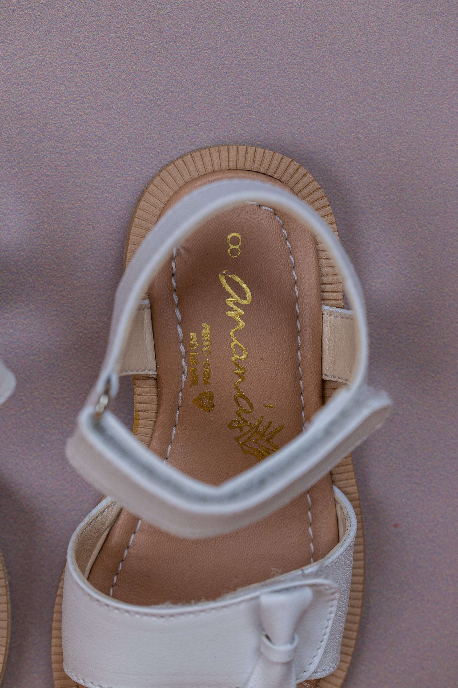 Sandália Infantil Ananás Dani Bow Couro Branco