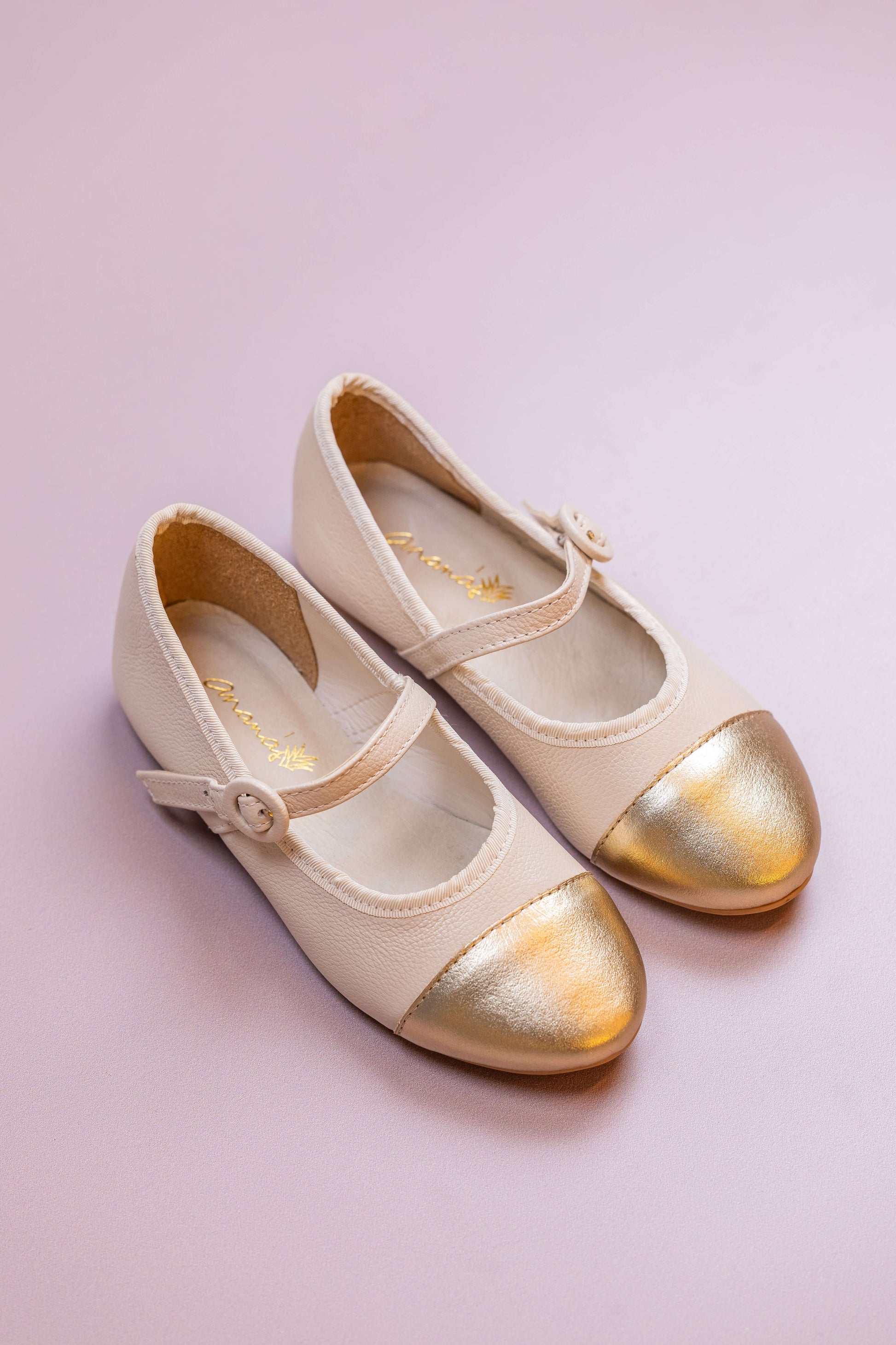 Sapatilha Infantil Ananás Amelie Couro Marfim com Ouro