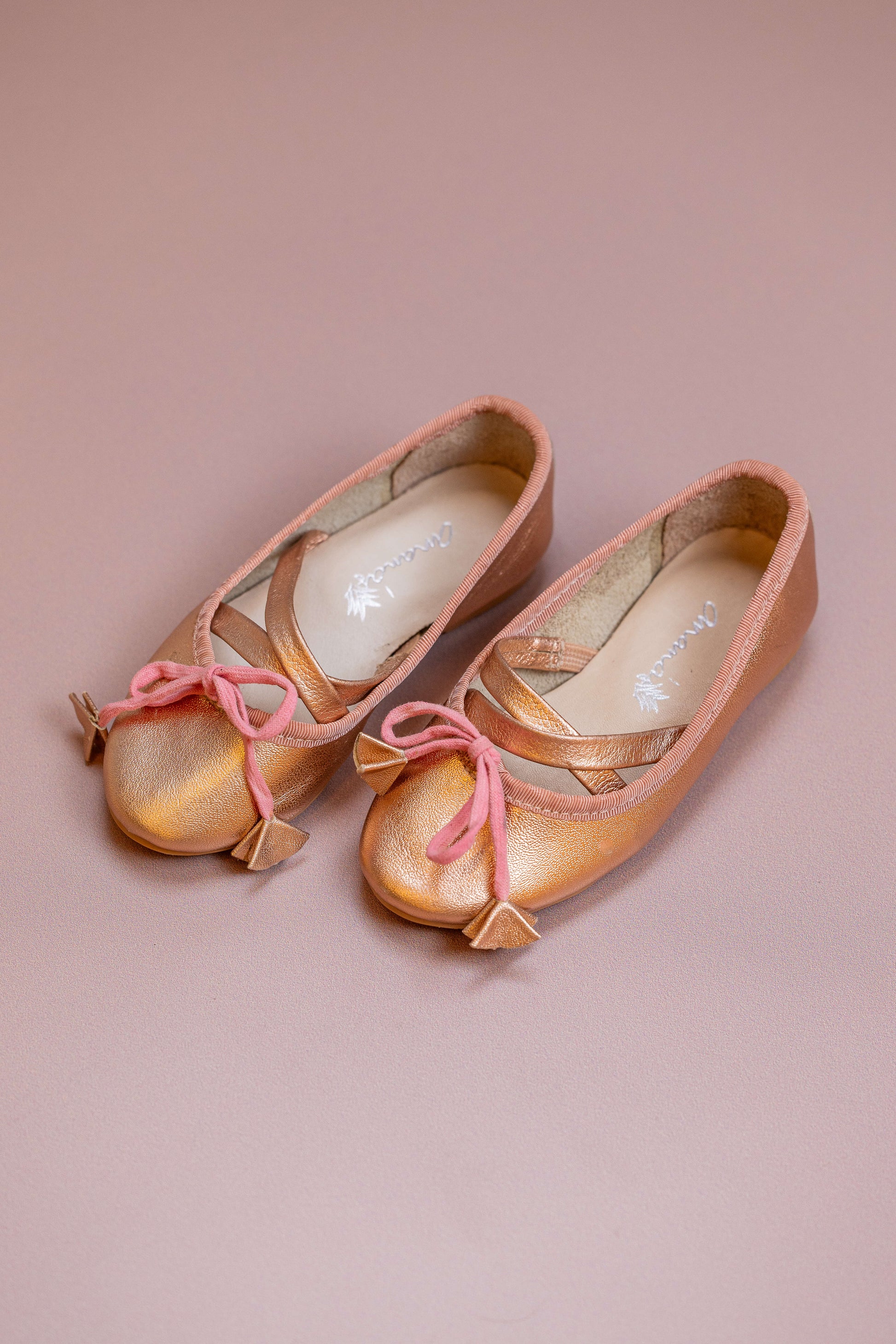 Sapatilha Infantil Ananás Bailarina Anna Couro Metalizado Rose