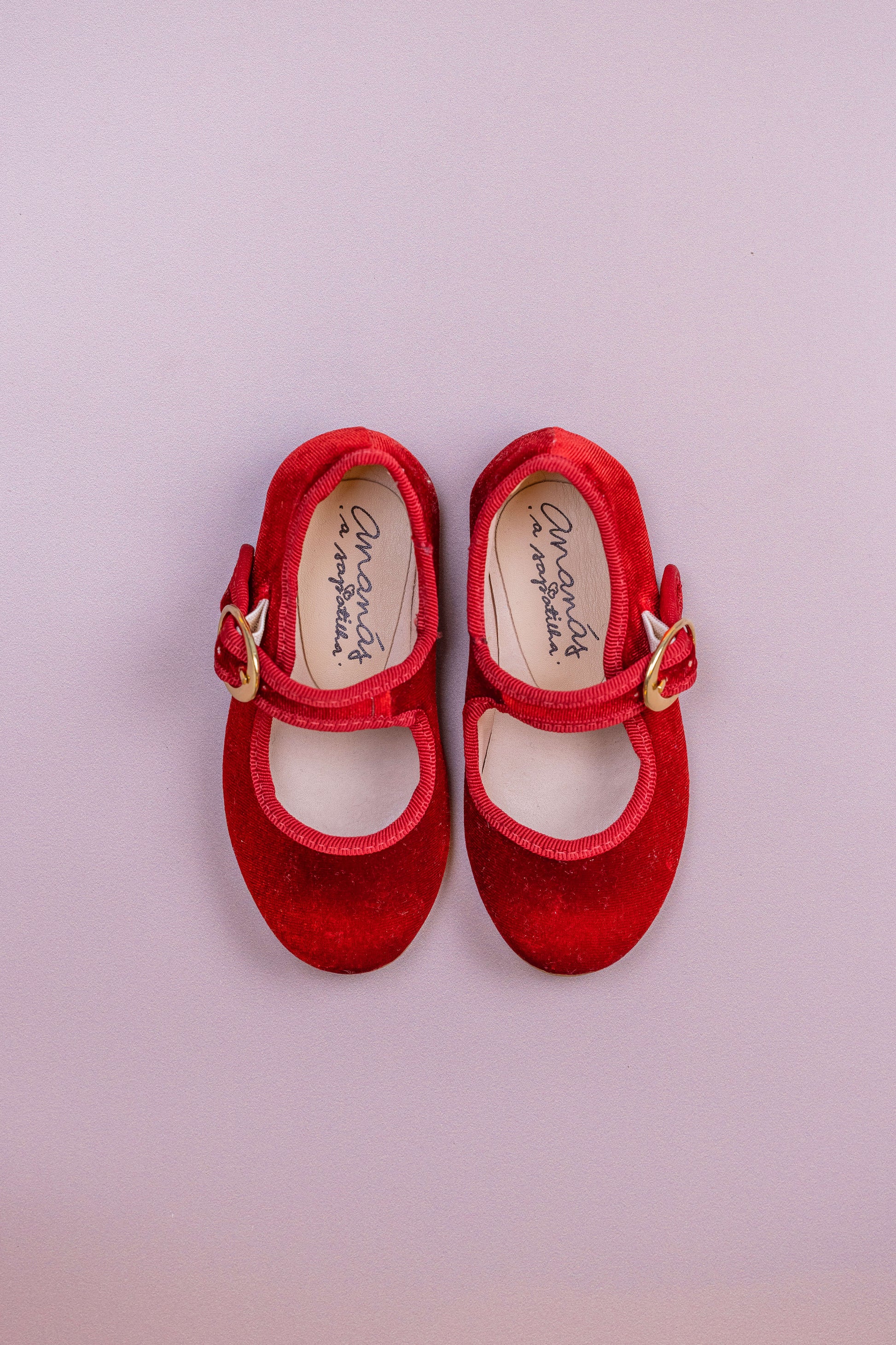 Sapatilha Infantil Ananás Bailarina Polina Veludo Vermelho