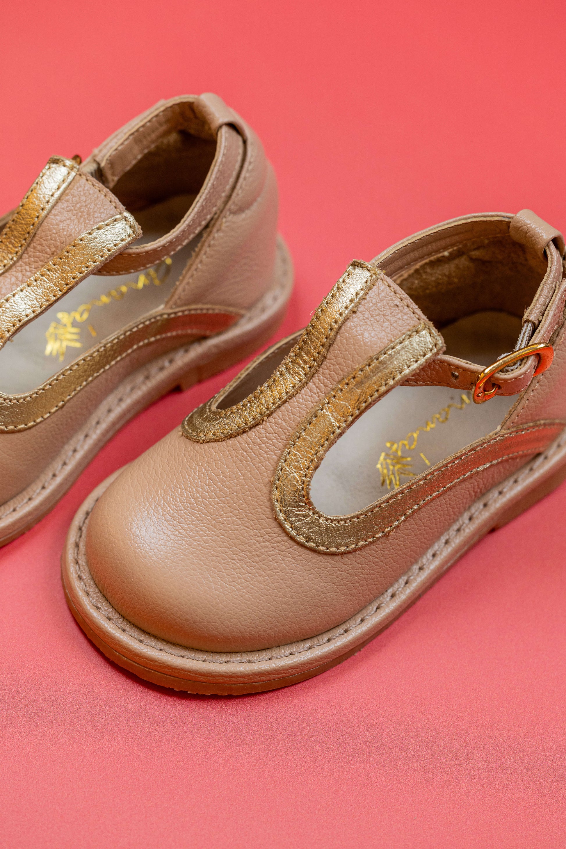 O modelo Diana é um sapatinho fechado e elegante, com recortes sofisticados e um visual encantador. Feito para meninas que gostam de brilho e delicadeza, ele brinca com o contraste entre o couro dourado e prata, criando um efeito único e cheio de charme. O coração na parte superior completa o design com um toque lúdico e especial.