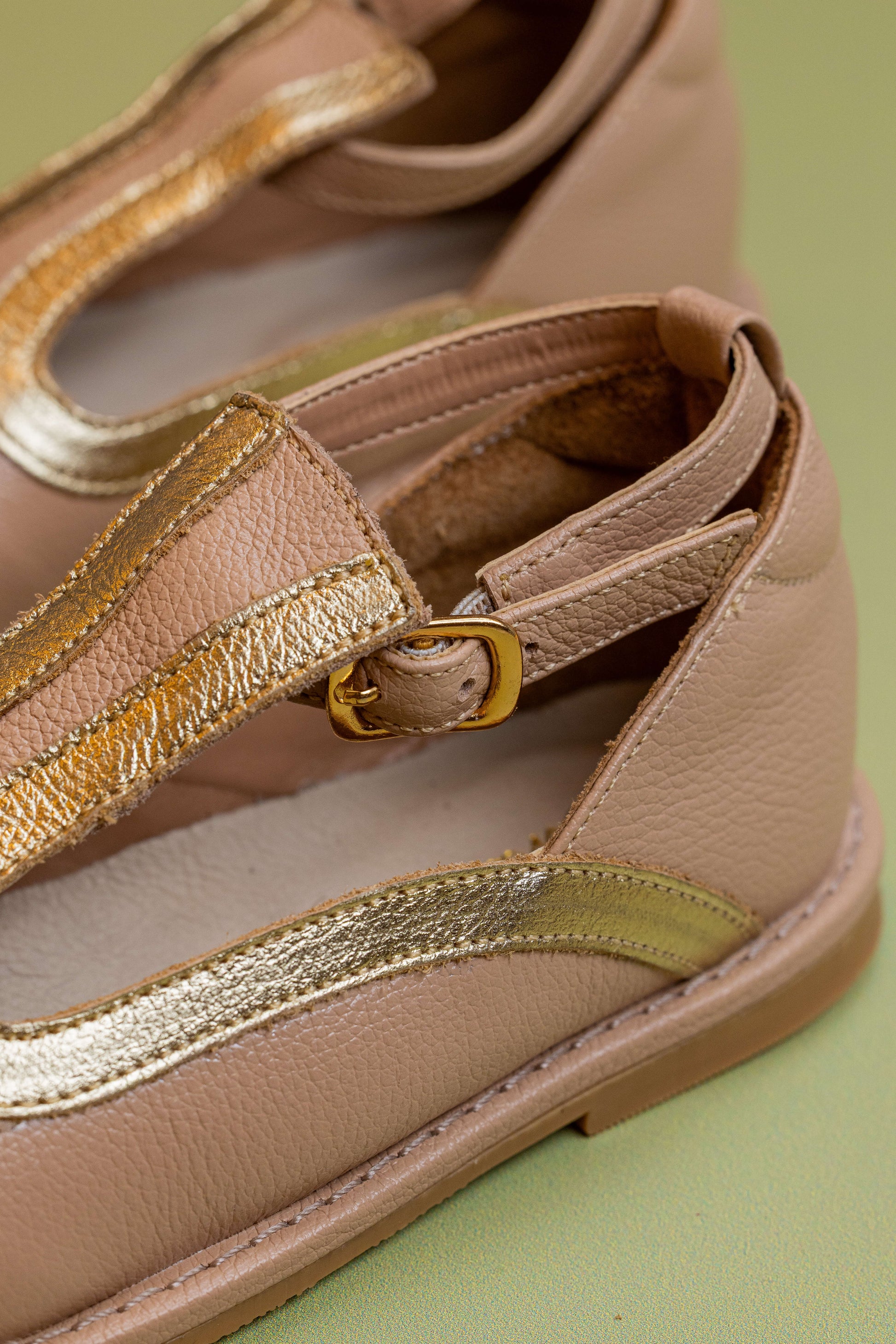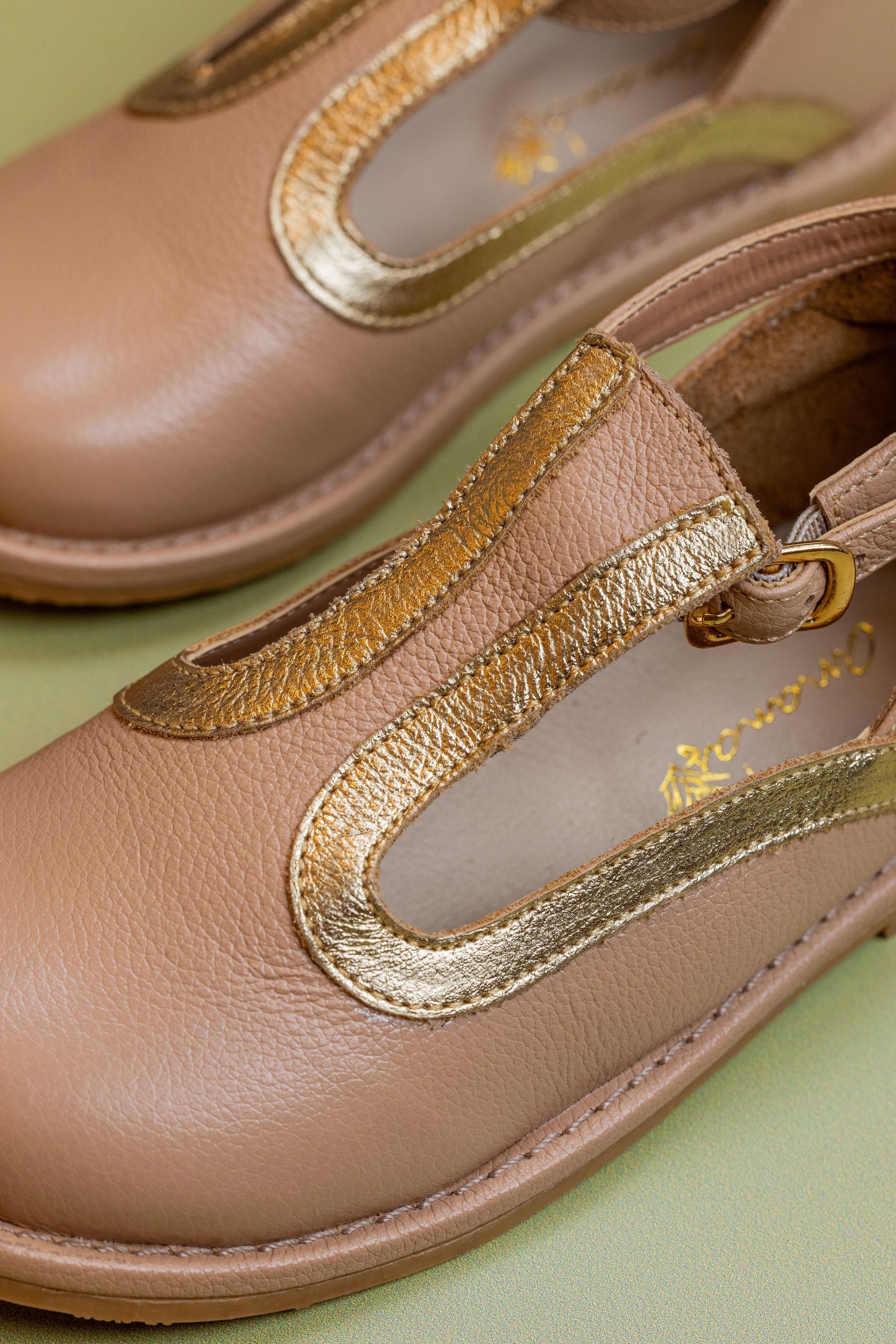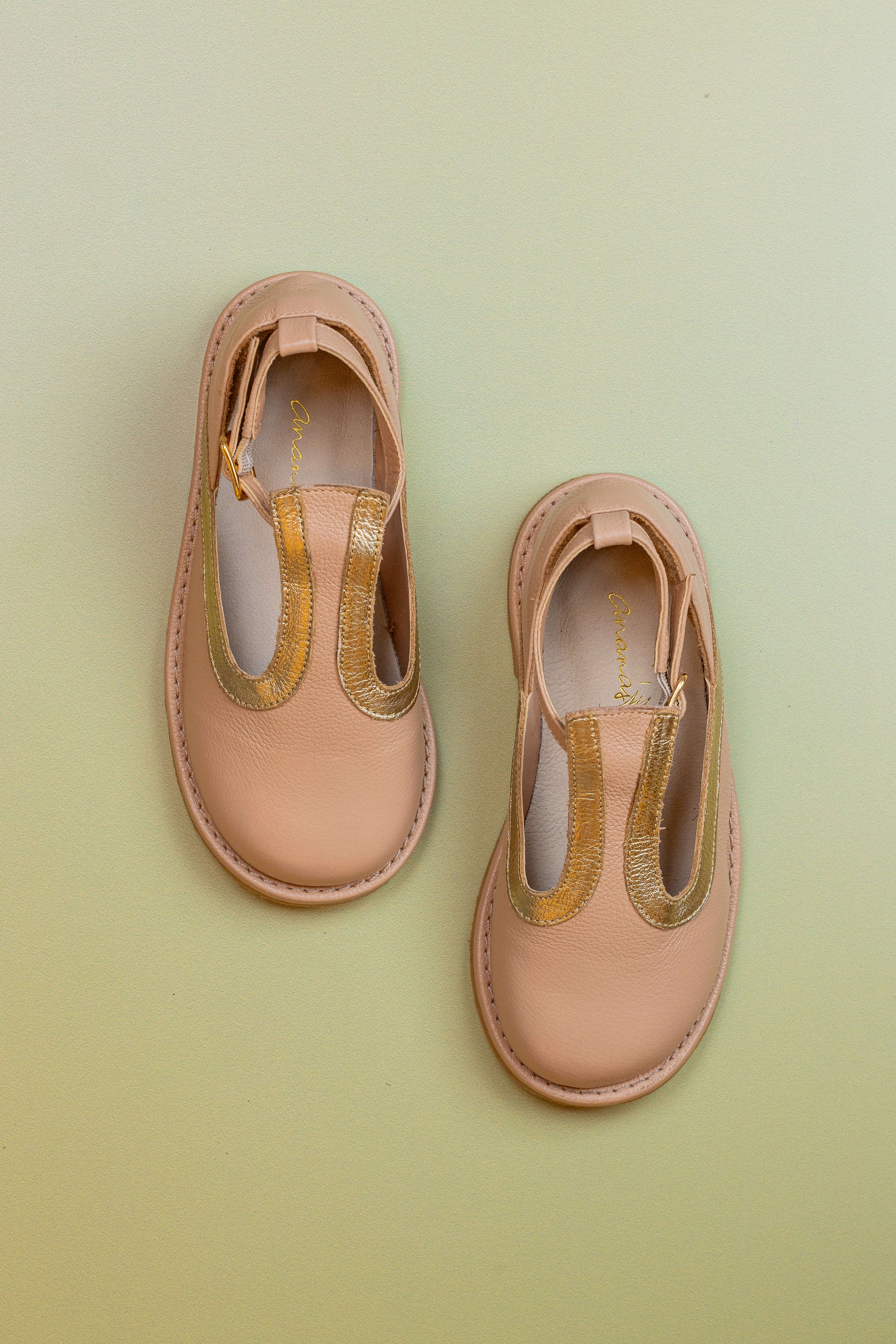 Sapato Infantil Ananás Diana Couro Bege com Ouro