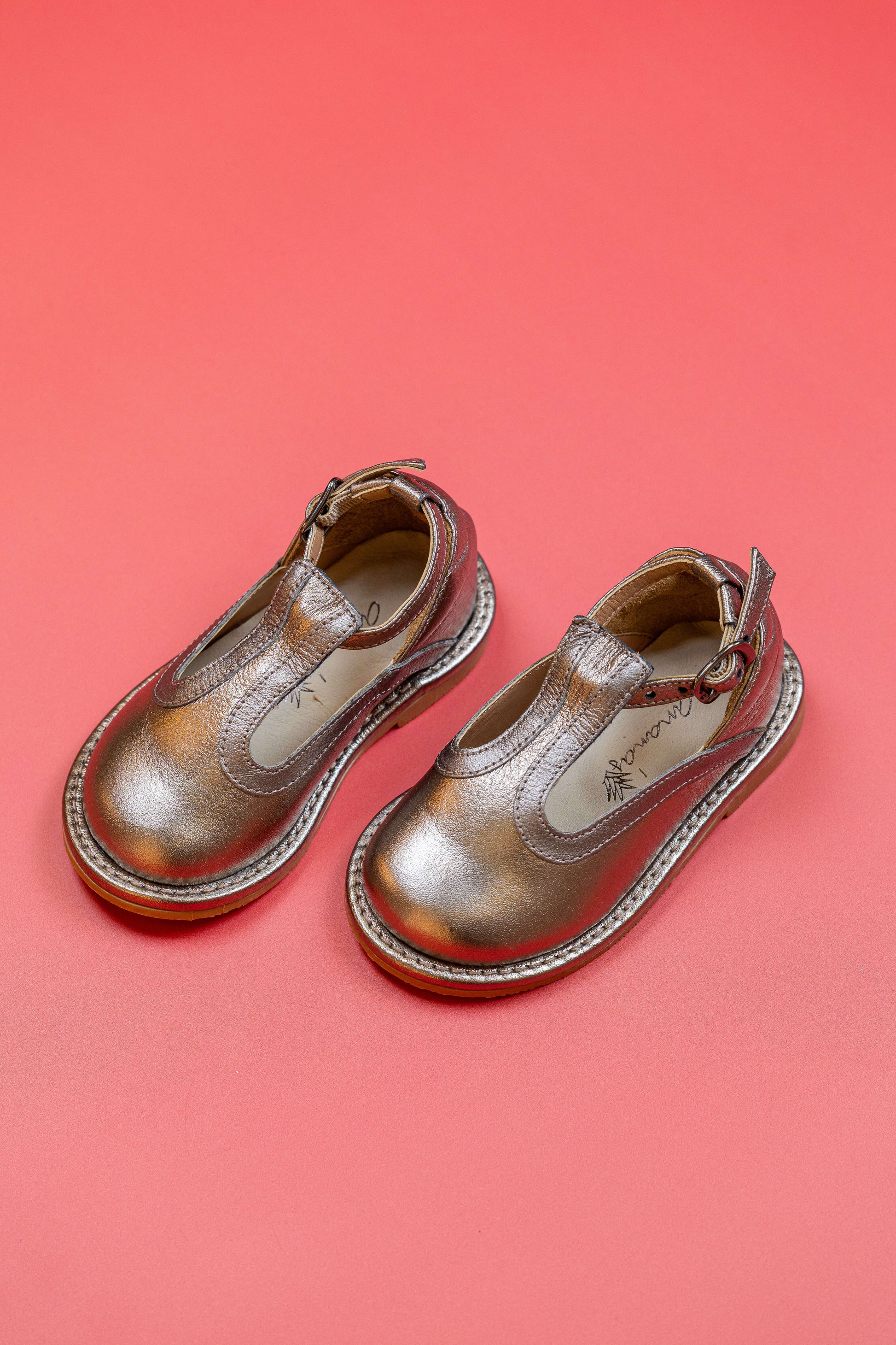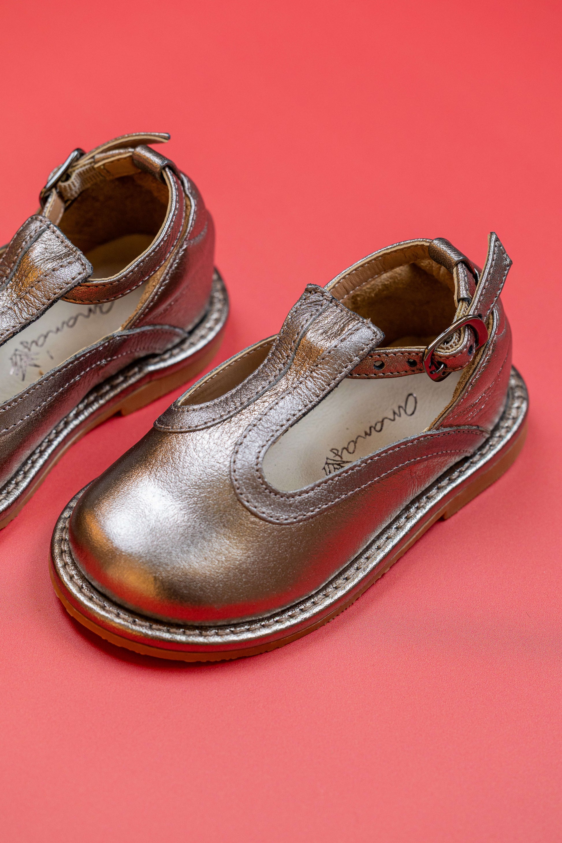 Sapato Infantil Ananás Diana Couro Metalizado Ouro Velho com Prata